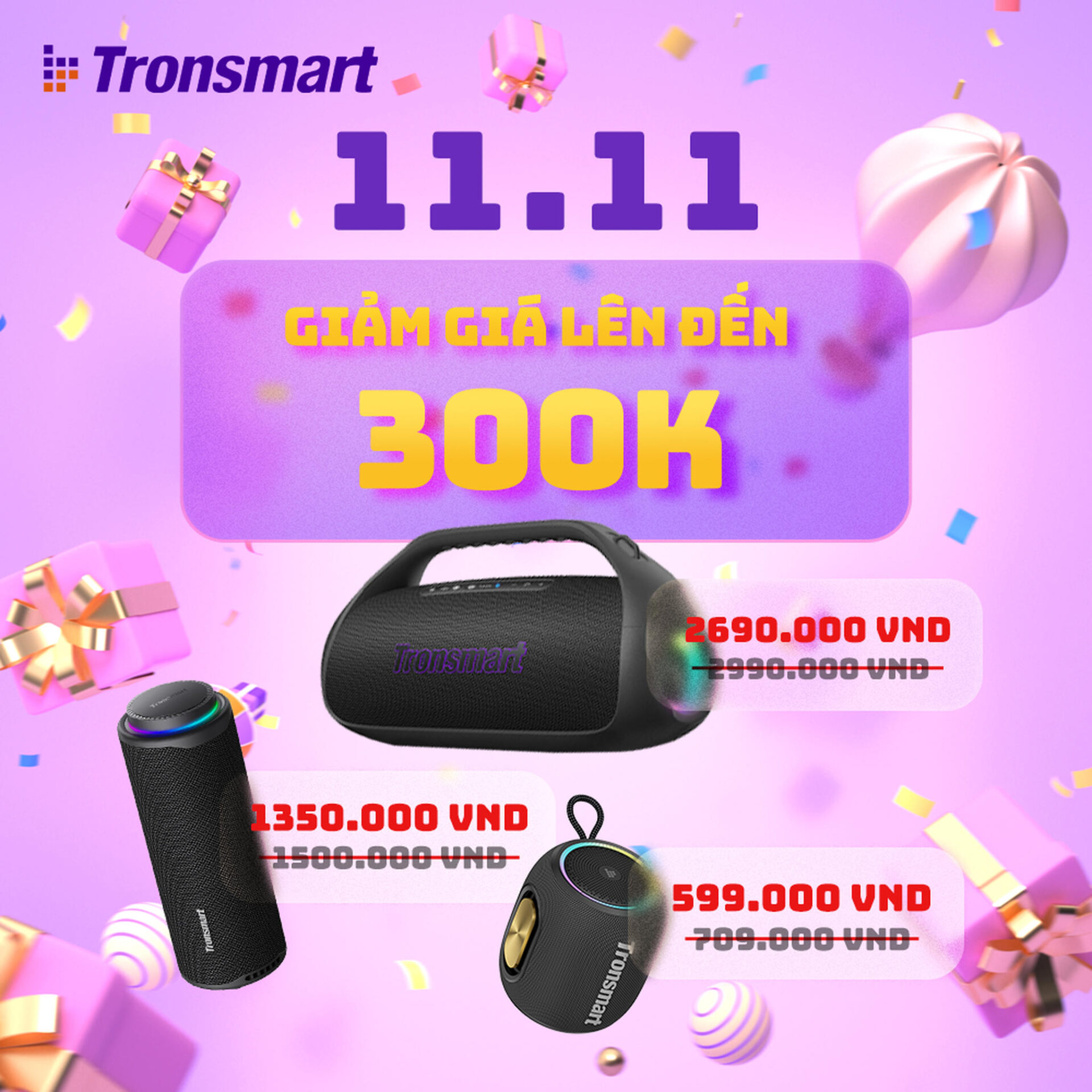 Mùa săn sale lớn nhất năm đã đến! Tronsmart mang đến chương trình “Siêu Sale 11.11” với cơ hội sở hữu các mẫu loa bán chạy nhất với mức giảm giá trực tiếp cực hấp dẫn. Đừng bỏ lỡ cơ hội nâng cấp trải nghiệm âm nhạc của bạn với chi phí tiết kiệm nhất!